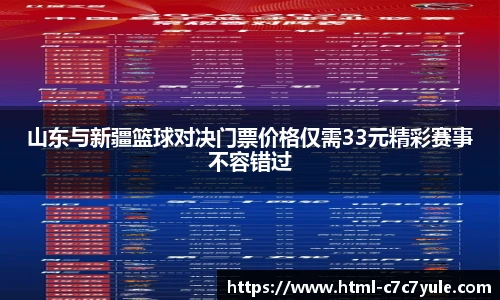 山东与新疆篮球对决门票价格仅需33元精彩赛事不容错过